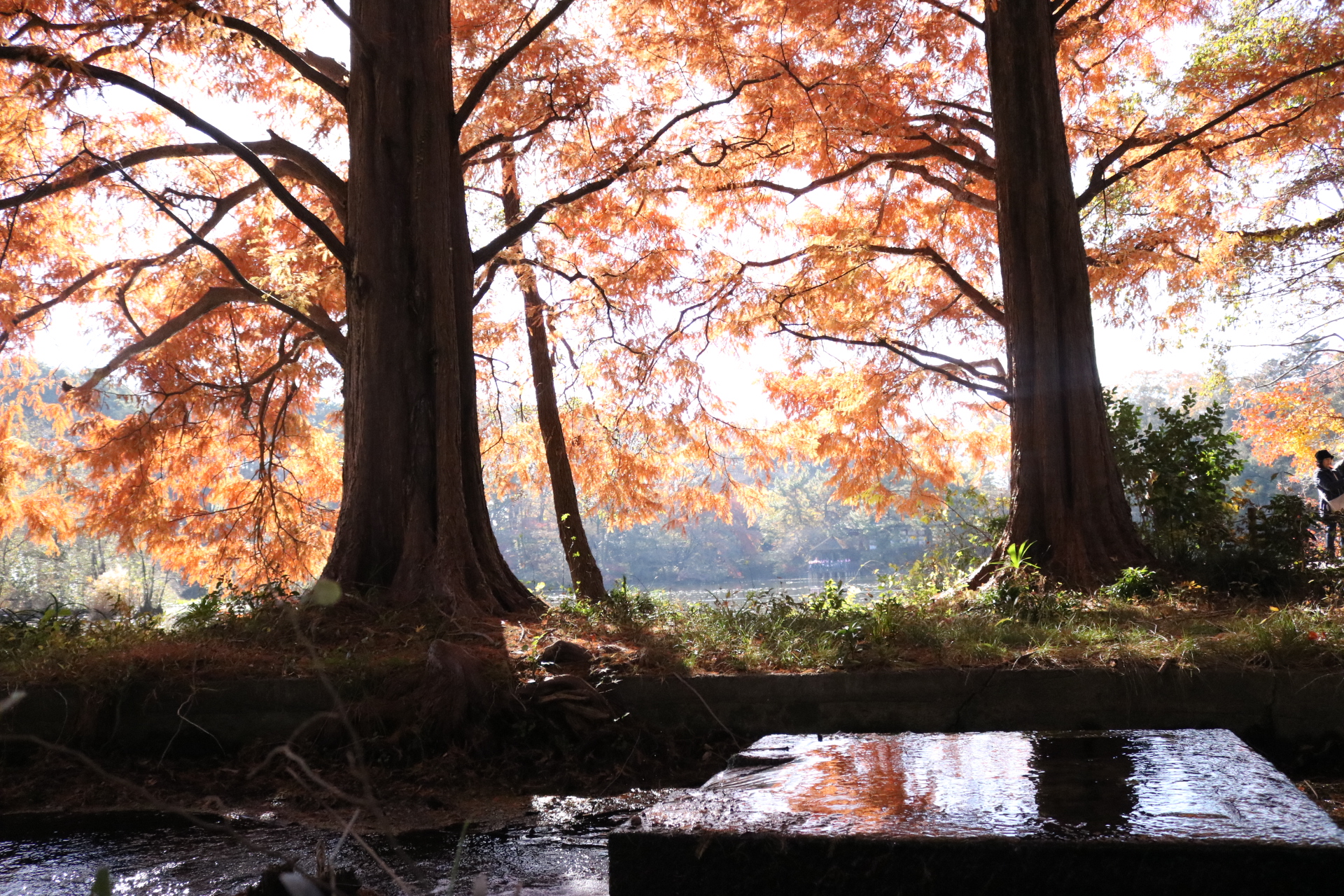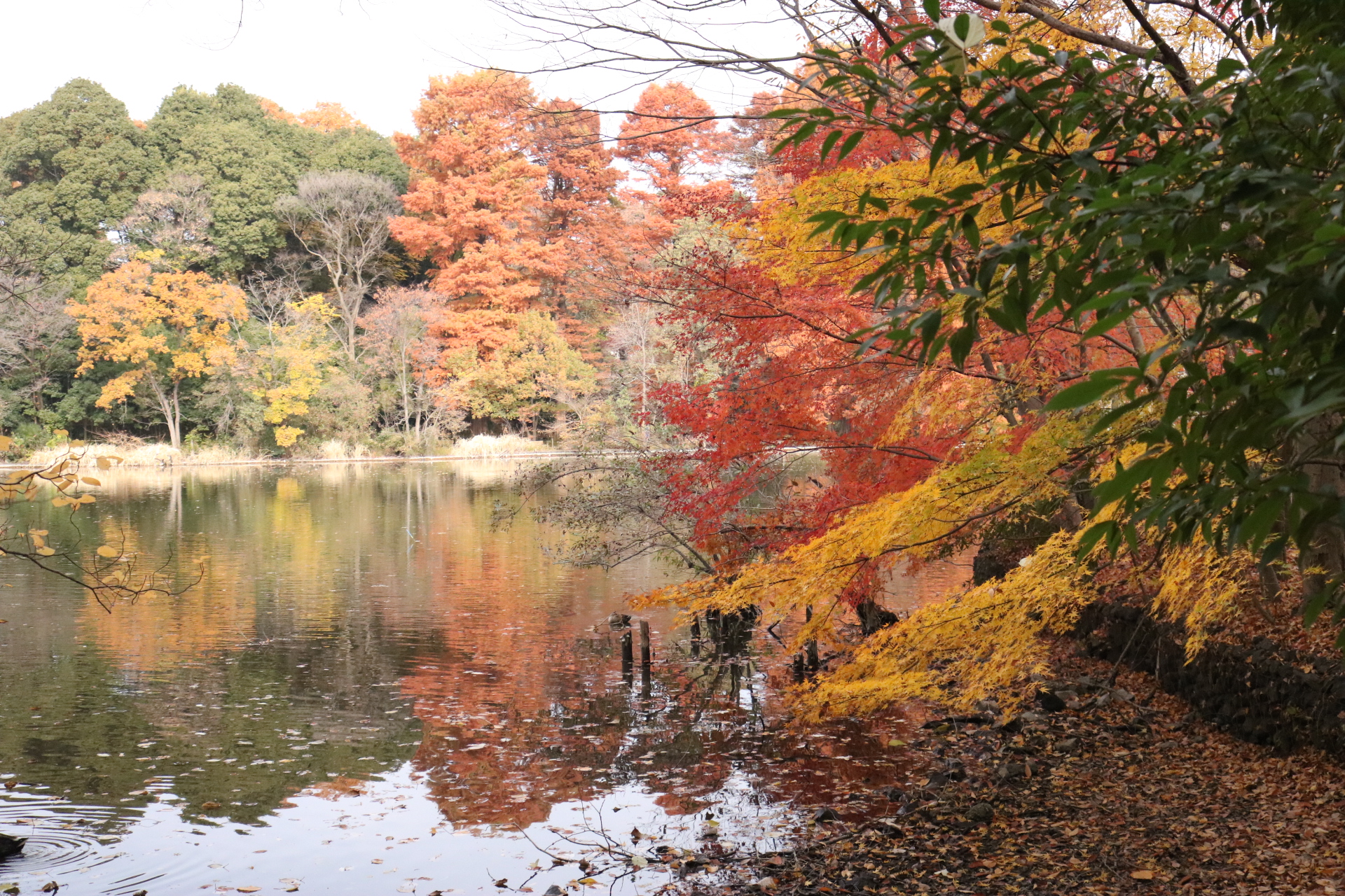 石神井公園駅から遠い方の池・三宝寺池の紅葉がきれいでした。